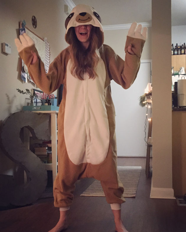 Christmas Eve was spent at a friend's house, who made us a delicious traditional Christmas meal, and included a thrilling game of Wits and Wagers. The night concluded with each of us opening a present of new pajamas. Nate 100%, hands down won....he got me a sloth onesie, and I fell in love with my husband all over again! We ended the night falling asleep to "It's a Wonderful Life".